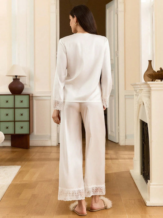 Women’s Embroidered Lace Long Sleeve Pajama Set
