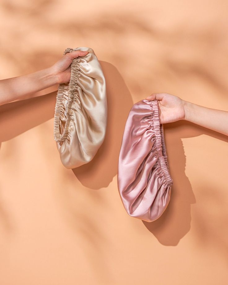 A silk sleep bonnet helps protect your hair while you sleep, keeping it smooth, healthy, and easier to manage in the morning. The ultra-smooth silk fibers reduce friction between your hair and the pillow, helping prevent breakage, frizz, and split ends throughout the night.